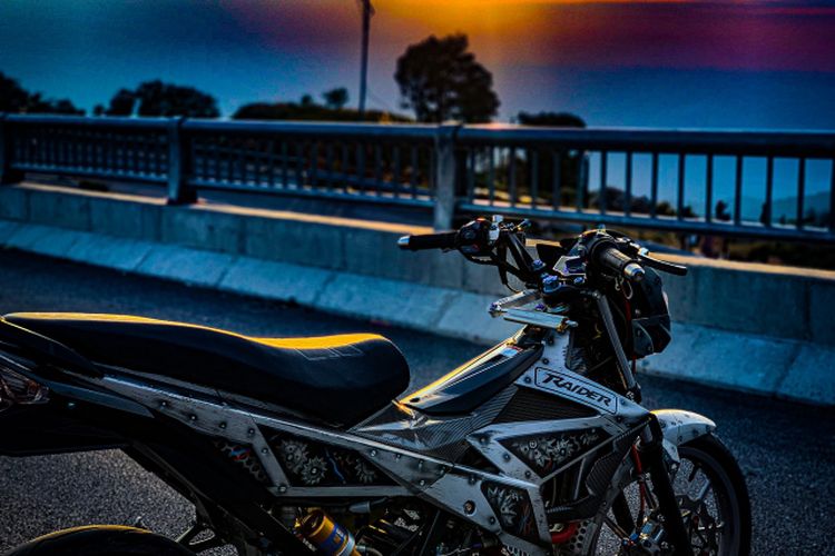 Suzuki Satria F150 ini diberi modifikasi yang begitu menarik karena bodinya dikonsep ala raw metal dan punya banyak part mewah.