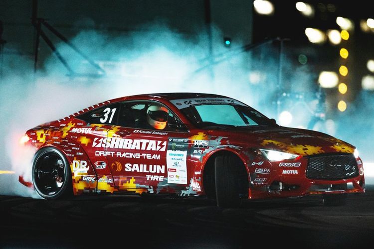 Modifikasi Infiniti Q60 jadi mobil drifting tunggangan Tatsuhiro Shibata, cangkok mesin R35 bertenaga 1.000 dk
