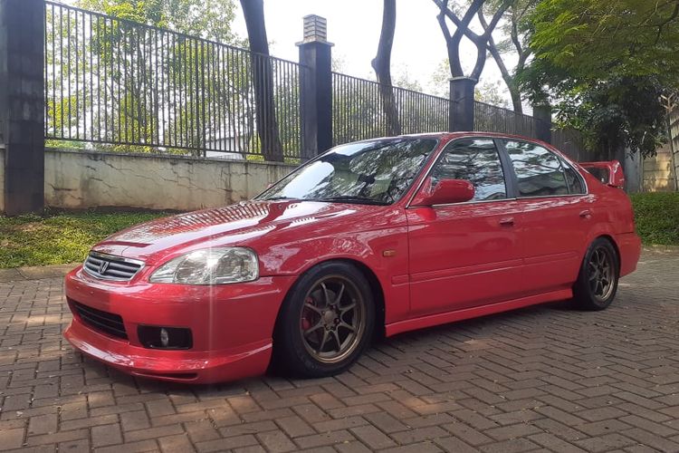 Video modifikasi Honda Civic Ferio, body merah merona bagian lain dibuat racing.