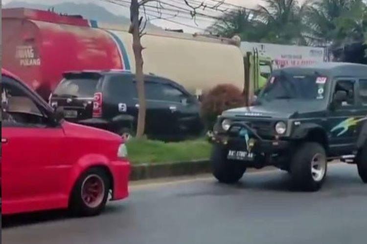 Angkot yang digiring mundur oleh Suzuki Katana viral di media sosial hingga jadi buah bibir warganet pada Senin (24/05).