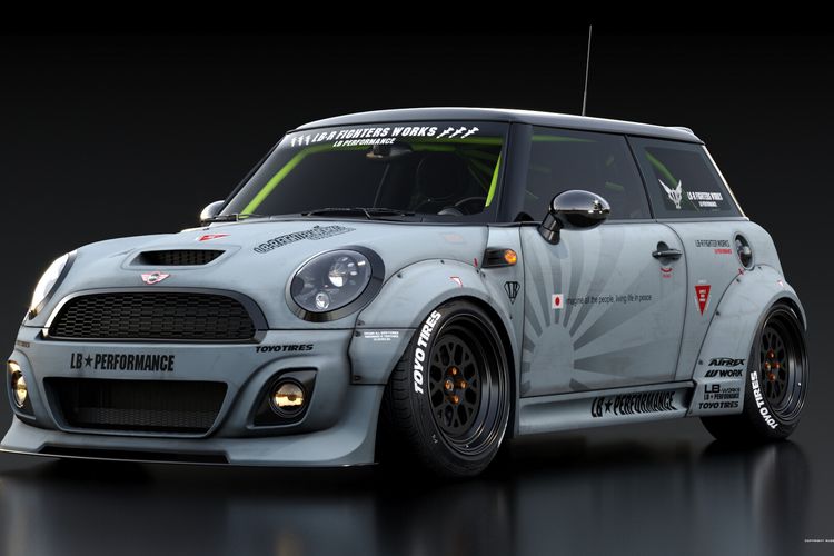 Penampilan MINI Cooper besutan Liberty Walk, Jepang, disuntik steroid hingga berubah melar dengan wide body. Simak ulasannya