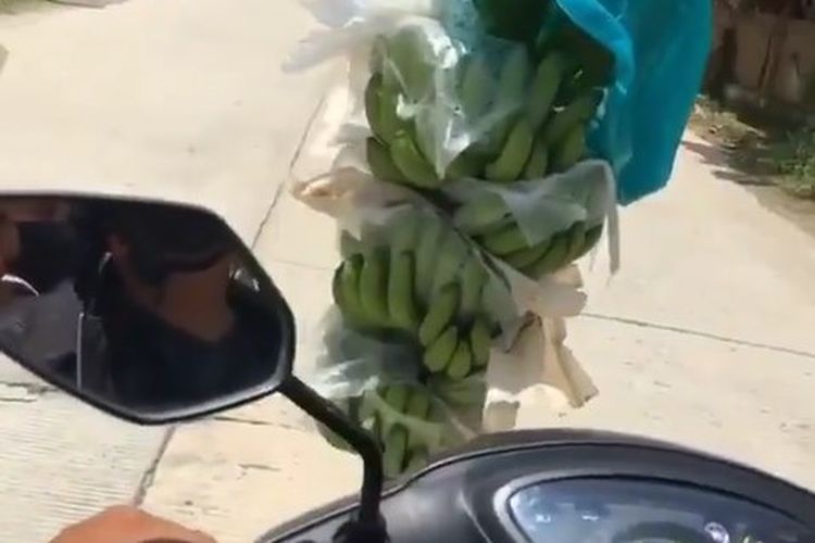 Jalan Terhalang, Pengendara Mengalah Demi Ratusan Tandan Pisang yang Melintas, Apakah Boleh?