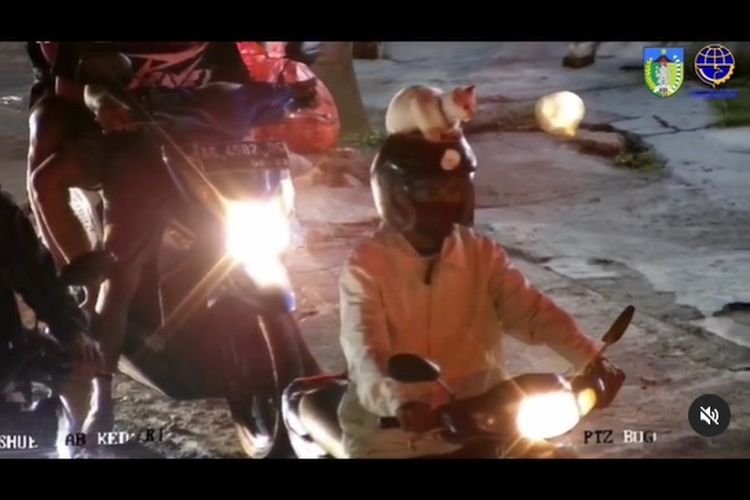 Kocak! Niat Ngezoom Bocah Naik Motor Tanpa Helm, Kamera CCTV Dishub Kediri Malah Temukan Kucing Night Ride di Atas Helm