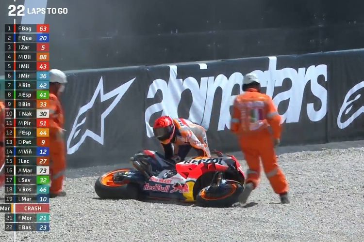 Marc Marquez Mengaku Salah, Senggolan Dengan Brad Binder dan Nyungsep di MotoGP Italia 2021