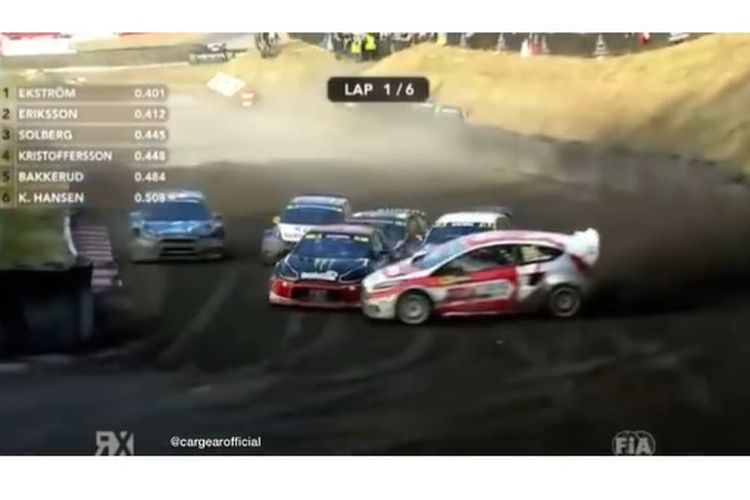 Aksi pengendara Ford Fiesta sekali drift langsung overtake tiga mobil sekaligus di ajang rallycross. Simak nih videonya