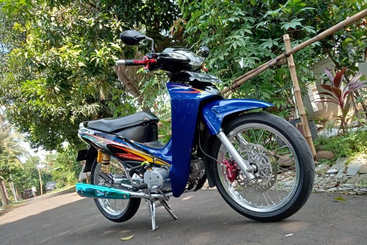 Kaki-kaki mirip motor balap, Honda Karisma X 125 tampil makin gahar. meski berjenis bebek bro Syahrul memperkuat aura racing pada motor miliknya