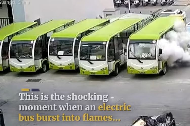 Belum diketahui apa yang menyebabkan bus bermesin listrik itu meledak secara tiba-tiba. Ini iideonya