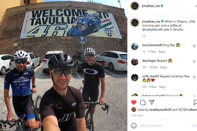Jonathan Rea berkunjung kampung Valentno Rossi di Tavullia menjelang WorldSBK Italia 2021. Ternyata dia pernah mengalahkan The Doctor di MotoGP.