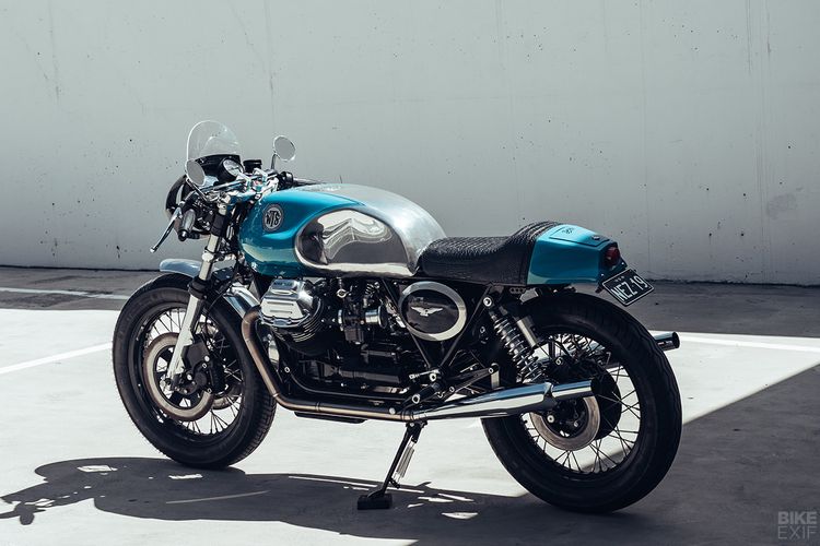 Moto Guzzi 850 T3 bergaya cafe racer ini tampil menawan setelah dirombak Deus Ex Machina menggunakan banyak part motor Inggris.
