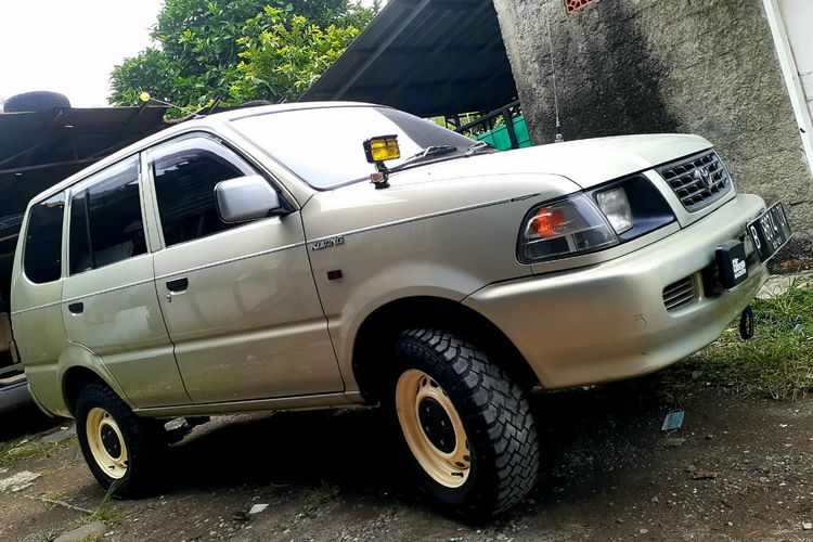 Modifikasi Toyota Kijang Kapsul tampil gagah bergaya alto, kaki-kaki custom tinggi dengan pelek kaleng dan ban berjenis MT