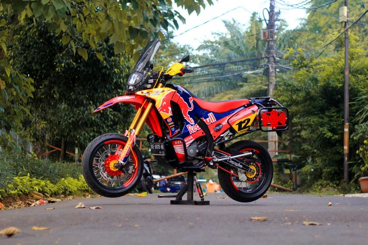 Honda CRF250 Rally ini berubah menjadi supermoto setelah mendapatkan rombakan sangar dari Caos Custom Bike.