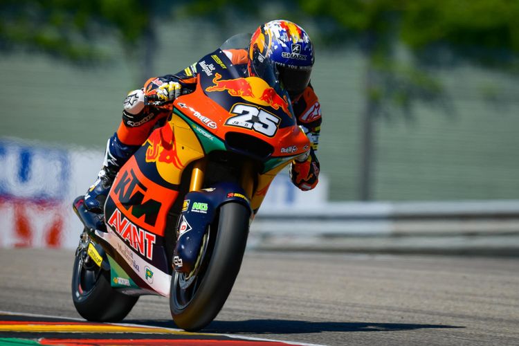 Raul Fernandez berhasil mematahkan dominasi Remy Gardner, pembalap tim Indonesia diapit dua KTM di Kualifikasi Moto2 Jerman 2021.