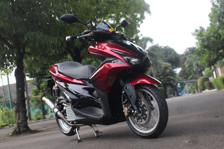 Modifikasi Yamaha Aerox bergaya racing daily, bodi dan kaki-kaki makin stylish dengan menggunakan berbagai part racing