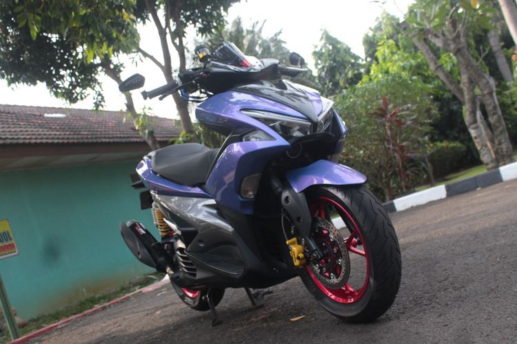 modifikasi Yamaha Aerox ala mahasiswa, bodi elegan kaki-kakinya sporty dengan repaint pelek dan sokbreker Ride IT GP Series