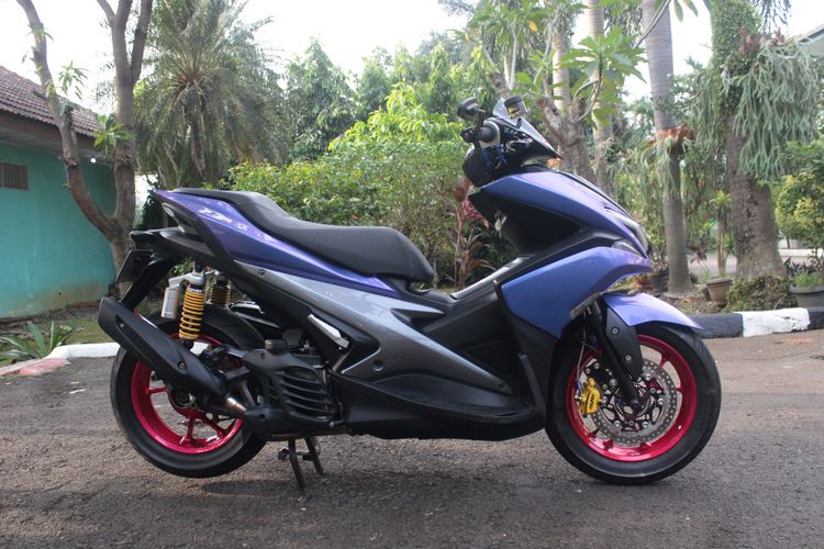 Yamaha Aerox satu ini sudah upgrade pengereman dan kaki-kaki. Sebut saja repaint pelek, pasokan kaliper rem Nissin Samurai 2pot, juga...