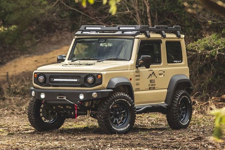 Modifikasi Suzuki Jimny baru garapan bengkel Aimgain, Jepang, suksek dibuat makin macho berkat ubahan bodi dan kaki-kaki.