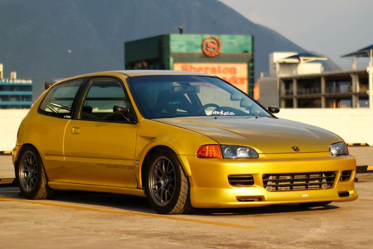 Modifikasi Honda Civic Estilo kece dari Meksiko dibalut kelir Yellow Austin dari BMW M4 dan ditopang kaki-kaki ciamik. Simak ulasannya