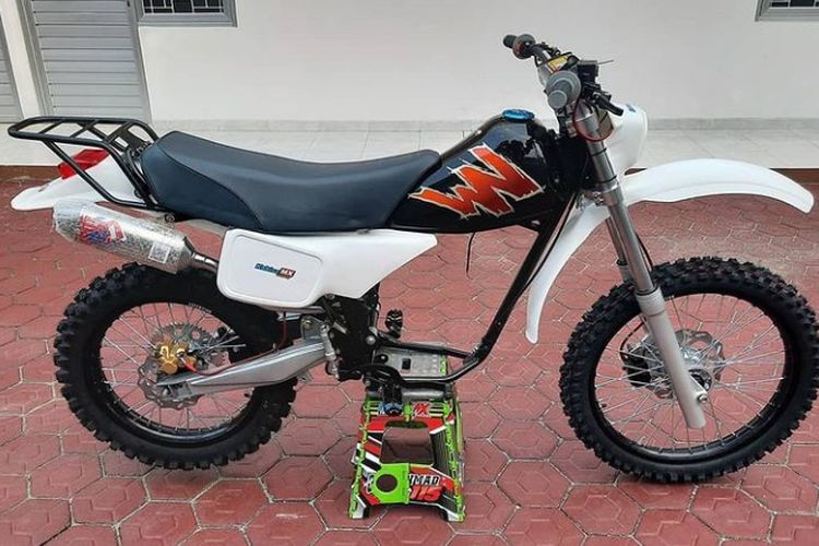Bengkel Kabisamx Trailshop di Bandung, Jawa Barat menyediakan beragam pilihan rolling sasis, salah satunya model Suzuki TS 125.