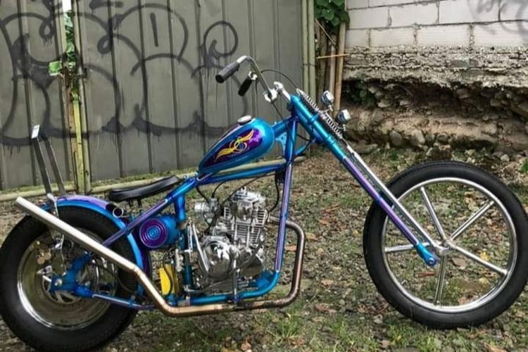 Custom chopper elegan basis Yamaha Scorpio, bentuk dan warnanya stylish. Chopbir alas choppet biru kece berbalut krom