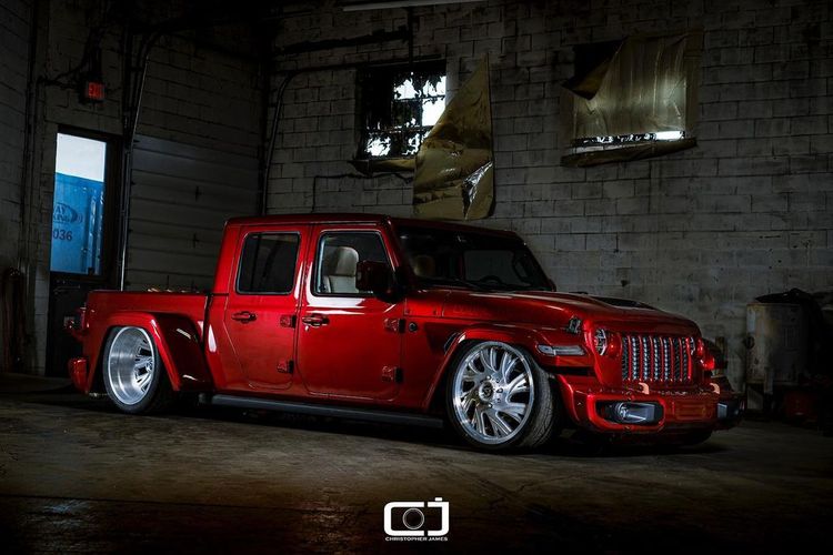 Modifikasi Jeep Gladiator garapan bengkel Co-Up Auto Body, Kanada ini tampil out of the box dengan kaki-kaki melata alias ceper
