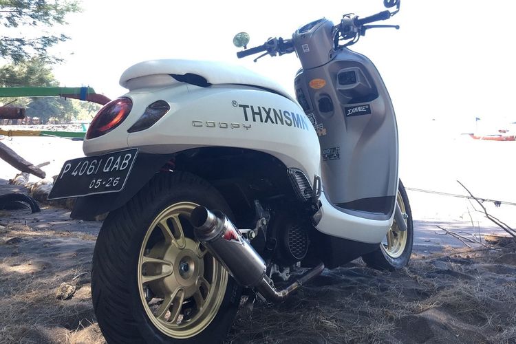 Honda Scoopy 2021 bergaya cafe racer ini tampil keren terutama knalpotnya yang memakai produk Best3 yang bersuara merdu.