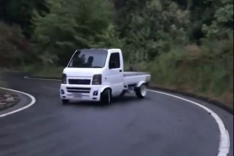 Ada Suzuki Carry dipakai buat drifting di jalanan gunung Jepang. Wah, bisa jadi saingannya Takumi Fujiwara dari anime Initial D nih.
