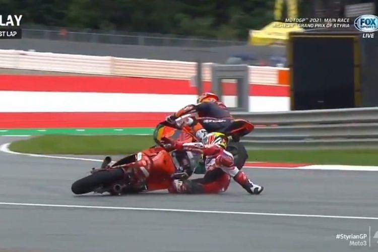 Moto3 Styria 2021 dibumbui drama crash Sergio Garcia pada lap akhir saat bersaing ketat dengan Pedro Acosta. Tapi ia tetap bisa finish urutan dua lo.
