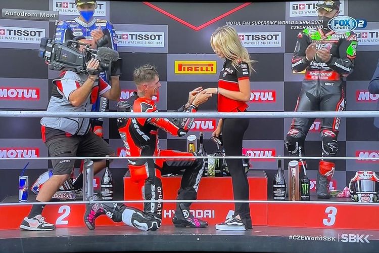 Scott Redding bikin kaget sang kekasih, langsung lamaran di podium setelah menang Race 2 WorldSBK Ceko 2021 .