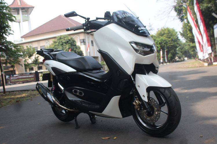 Modifikasi Yamaha All New NMAX berkelir putih tampil proper, tampilan kece ala motor matic Eropa dengan behel dan aksesori kece