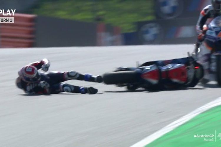 Aksi Aron Cannet dan Celestino Vietti Hindari Motor Cameron Beaubier yang Crash pada FP1 Moto2 Austria 2021, Skill or Luck?