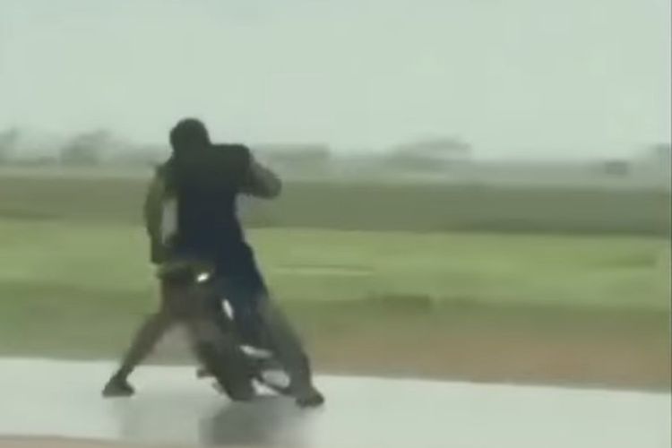 Seolah Miliki ‘Skill Dewa’, Pengendara Motor Ini Tak Pusing Meski Manuver di Jalan Basah
