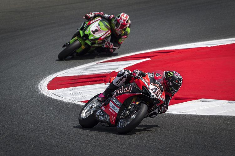 Menang duel dengan Jonathan Rea, Scott Redding kembali unggul di Superpole Race WorldSBK Navarra 2021.