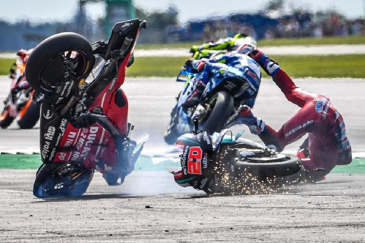 Crash lap pertama MotoGP Inggris 2021 masih hangat dalam ingatan fans, Andrea Dovizioso sampai hilang ingatan usai tabrakan.