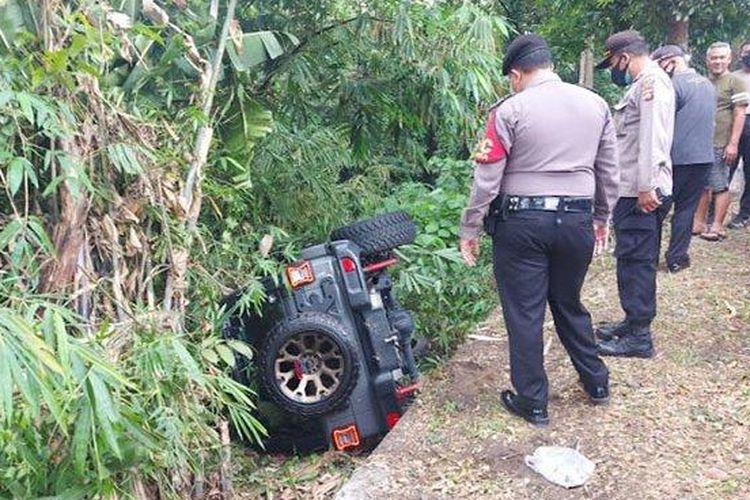 Jeep Wrangler Rubicon hilang kendali setelah menyalip Toyota Avanza di Jalan Raya Denpasar-Gilimanuk, Selasa (24/08).