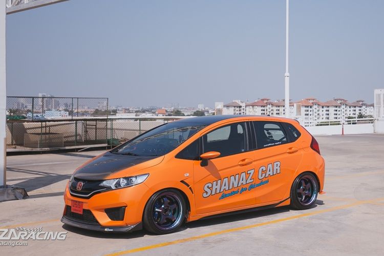 Modifikasi Honda Jazz GK5 asal Thailand ini tampil sporty dengan balutan kelir oranye dan serat kabon, serta bermesin turbon