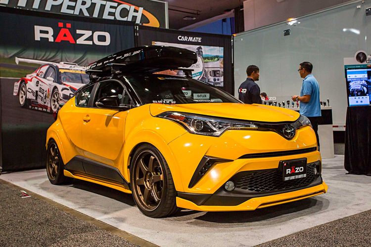 Modifikasi Toyota C-HR gayanya keren maksimal pasang body kit Artisan Spirits, roof box di atap, dan pelek Volk Racing TE37 Ultra