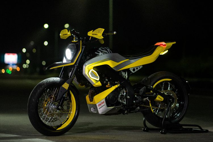Yamaha XSR 155 bergaya supermoto garapan Treasure Garage ini tampil keren dan mempesona dengan nuansa modern futuristik.