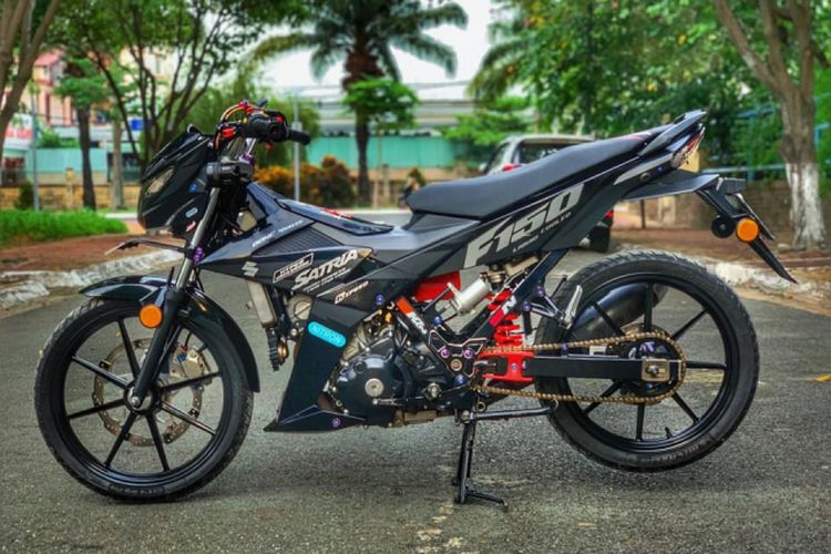 Bermodalkan modifikasi yang simpel dan fokus pada kaki-kaki, Suzuki Satria F150 ini jadi tampil lebih menarik.