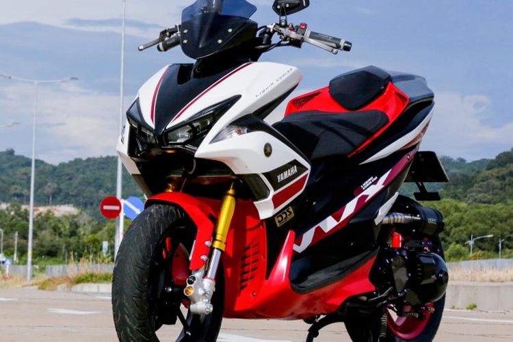 Yamaha Aerox 155 ini tampil begitu sangar setelah mendapatkan modifikasi yang begitu impresif dan hedon.