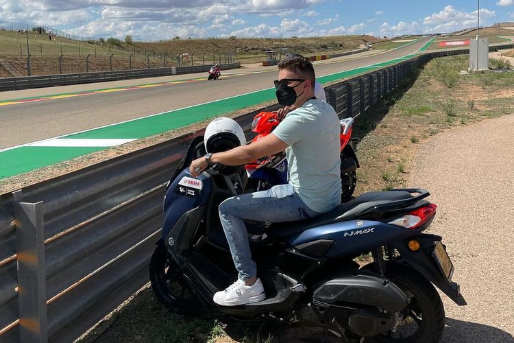 Mantan test rider Yamaha, Jorge Lorenzo terpantau nonton FP2 MotoGP Aragon 2021 sambil ‘metengkreng’ di atas All New NMAX.