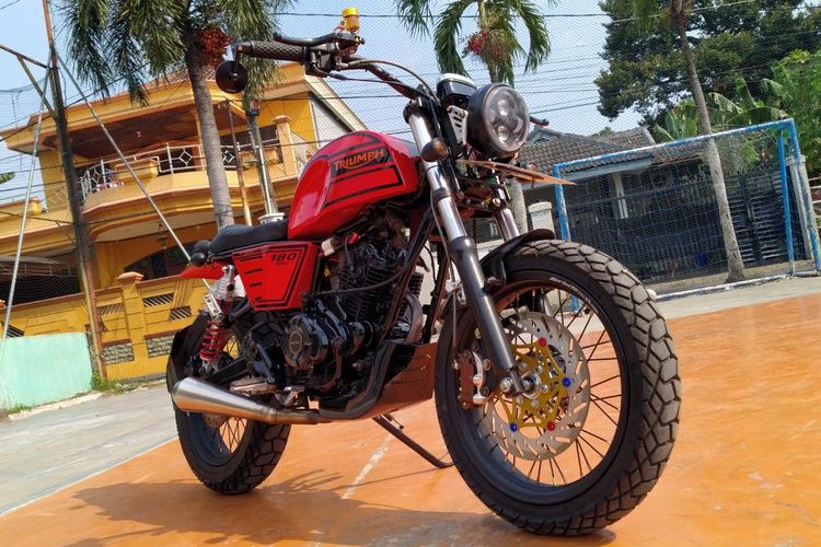 modifikasi Bajaj Pulsar 180 ala scrambler. Kaki-kakinya kekar bergaya dual purpose dengan pelek, ban, sokbreker dan pengereman baru