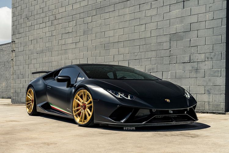 Modifikasi Lamborghini Huraca serba hitam tampil stylish modal ganti pelek Strasse berwarna emas. Simak ulasannya