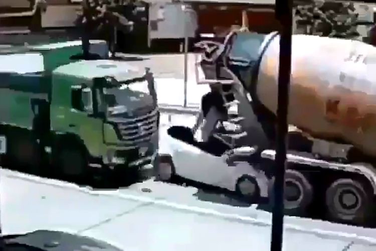 Nahas, Sebuah Hatchback Terhimpit Dua Truk Besar Sampai Gepeng, Begini Cara Berhenti di Belakang Kendaraan yang Aman