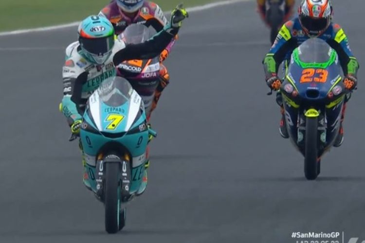 Hasil Moto3 San Marino 2021 - Sempat Kesulitan Kejar Romano Fenati, Dennis Foggia Akhirnya Menang, Andi Gilang Gagal Raih Poin