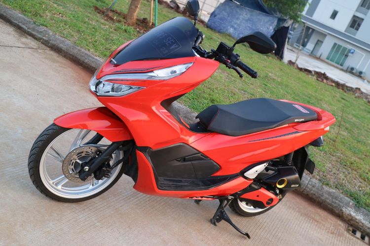 modifikasi honda pcx 150, unjuk gigi repaint bodi oranye plus rombak kaki-kaki cangkok pelek Honda SH150i asal Vietnam