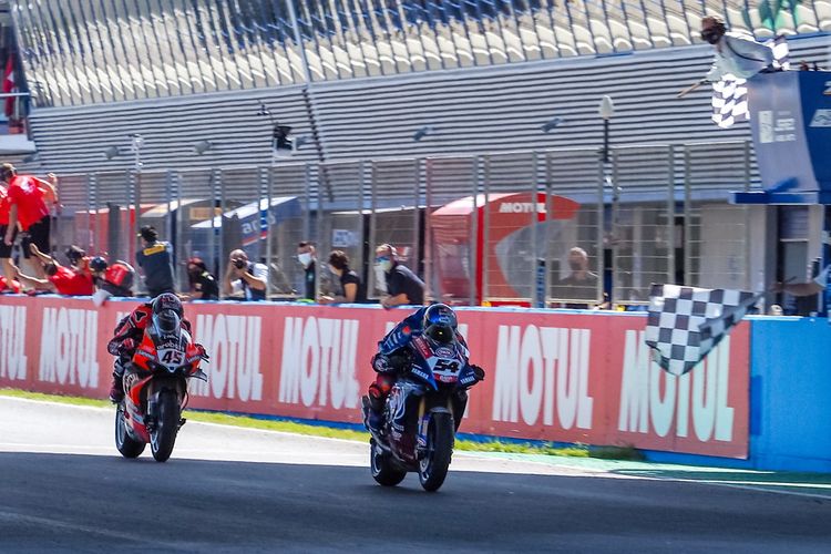 Toprak Razgatlioglu berhasil melakukan sapu bersih setelah menang duel dengan Scott Redding di Race 2 WorldSBK Spanyol 2021.