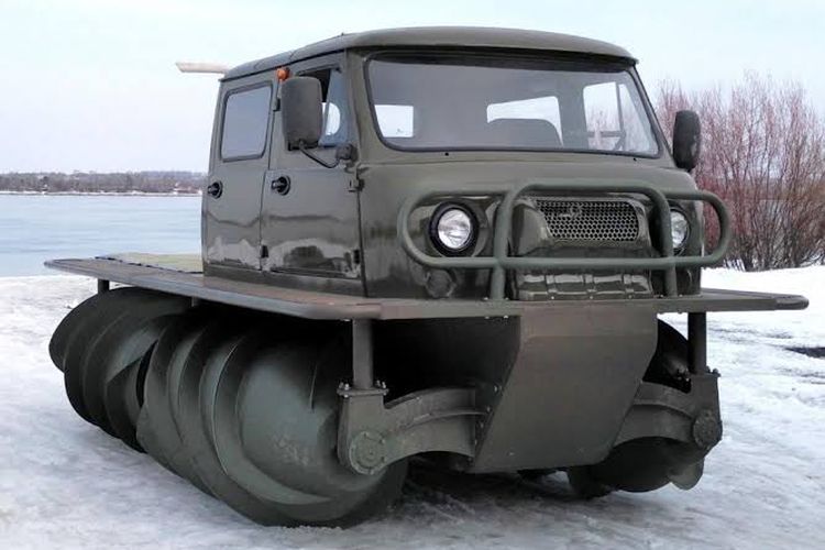 Ini truk asli bukan editan, bukan pakai roda biasa tapi seperti mata bor yang terlihat ngeri. Angkot ngetem bisa tergiling.