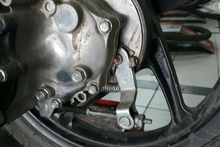 Tips beli motor bekas, ciri oli gardan motor matic rembes bisa dilihat dari adanya oli bocor dari bagian belakang sekitar transmisi CVT.