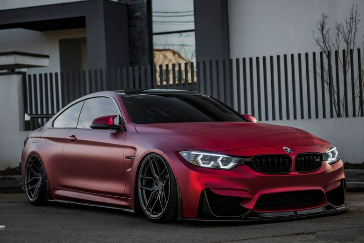 BMW M4 Dimodif Simpel Berjubah Merah Satin dan Pakai Pelek Baru