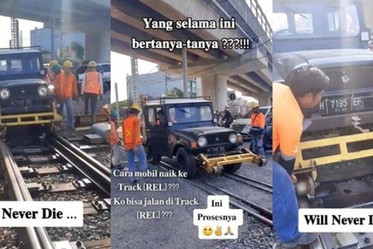 Biasanya bermain di tanah atau aspal, tetapi Daihatsu Taft F50 ini mencuri perhatian warganet karena melintas di rel kereta api.